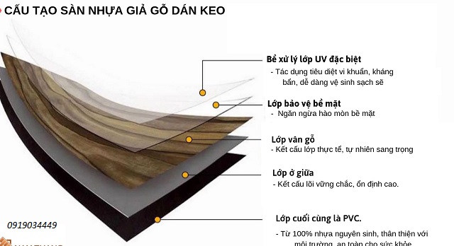 Cấu tạo của sàn nhựa giả gỗ dán keo
